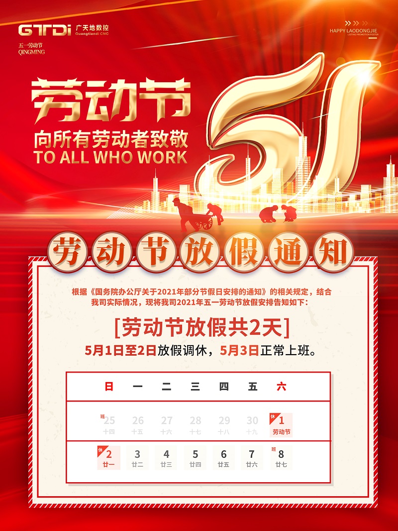 根据《国务院办公厅关于2021年部分节假日安排的通知》的相关规定,结合我司实际情况,现将我司2021年五一劳动节放假安排告知如下: