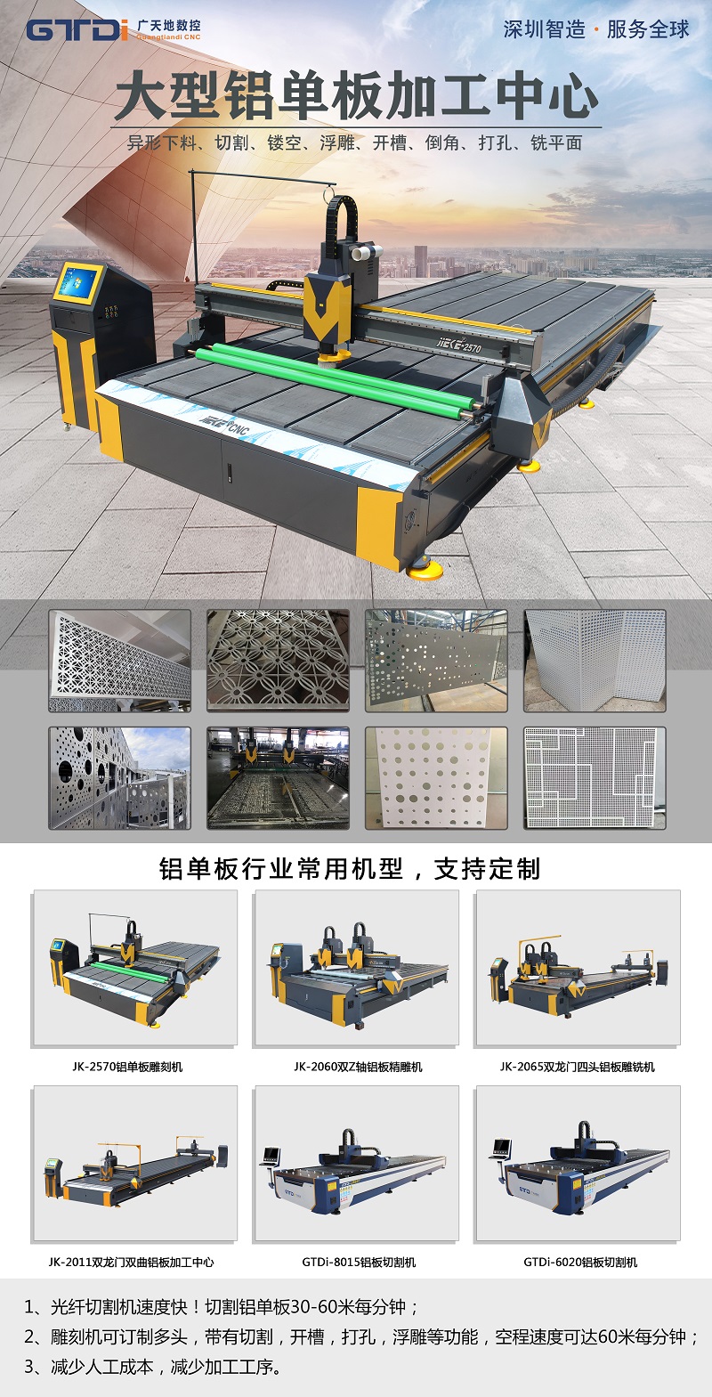关于铝单板雕刻机的价格的分析,广天地数控的介绍就到这里了,大家在选购时对于价格应该做到知根知底,但是也不能太过的在意价格,贪图便宜往往是大忌,一定要选择正规的铝单板雕刻机厂家,质量与价格往往是成正比的。