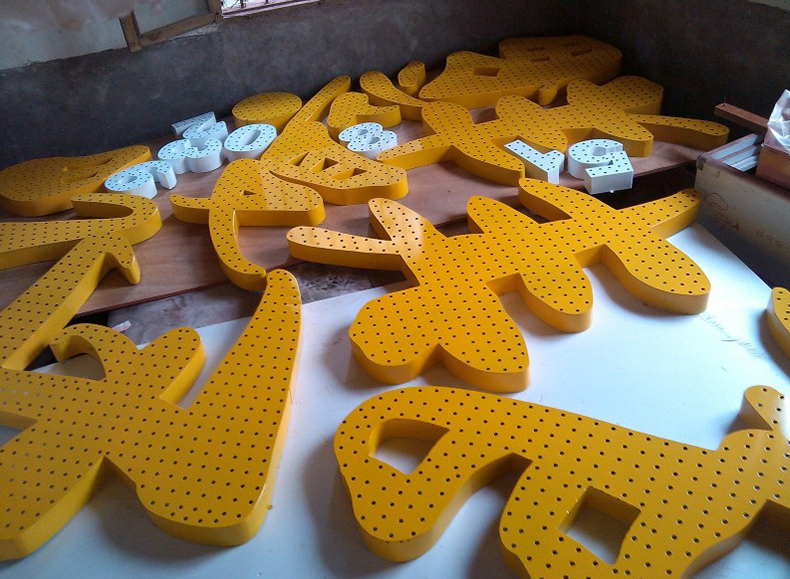 广天地数控研发生产的迷你字雕刻机、光纤激光切割机、激光焊字机等,在制作不锈钢冲孔字工艺中都有用到。
